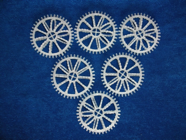 花环填料也称塑料花环,是由12个圆环按径向排列而组成的一个大扁环体,很类似于一个螺旋形弹簧尾相撞绕成的一个圆球体。