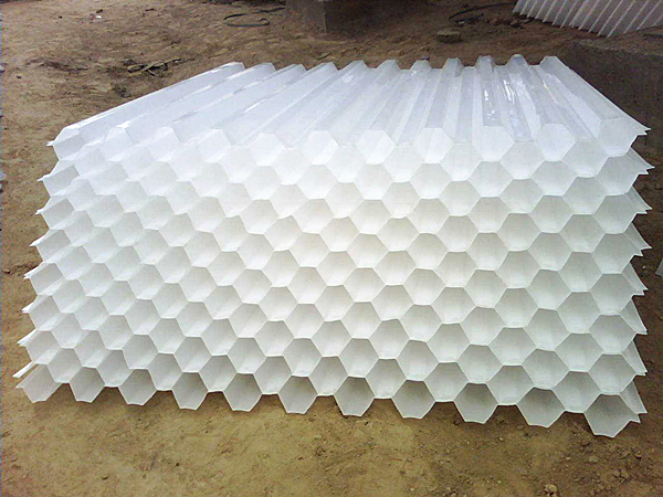 乙丙共聚蜂窝斜管填料采用进口改性乙丙共聚塑料为材料,红外线恒温机械热拉成六角管状,高频焊接成整体产品,到客户现场安装。